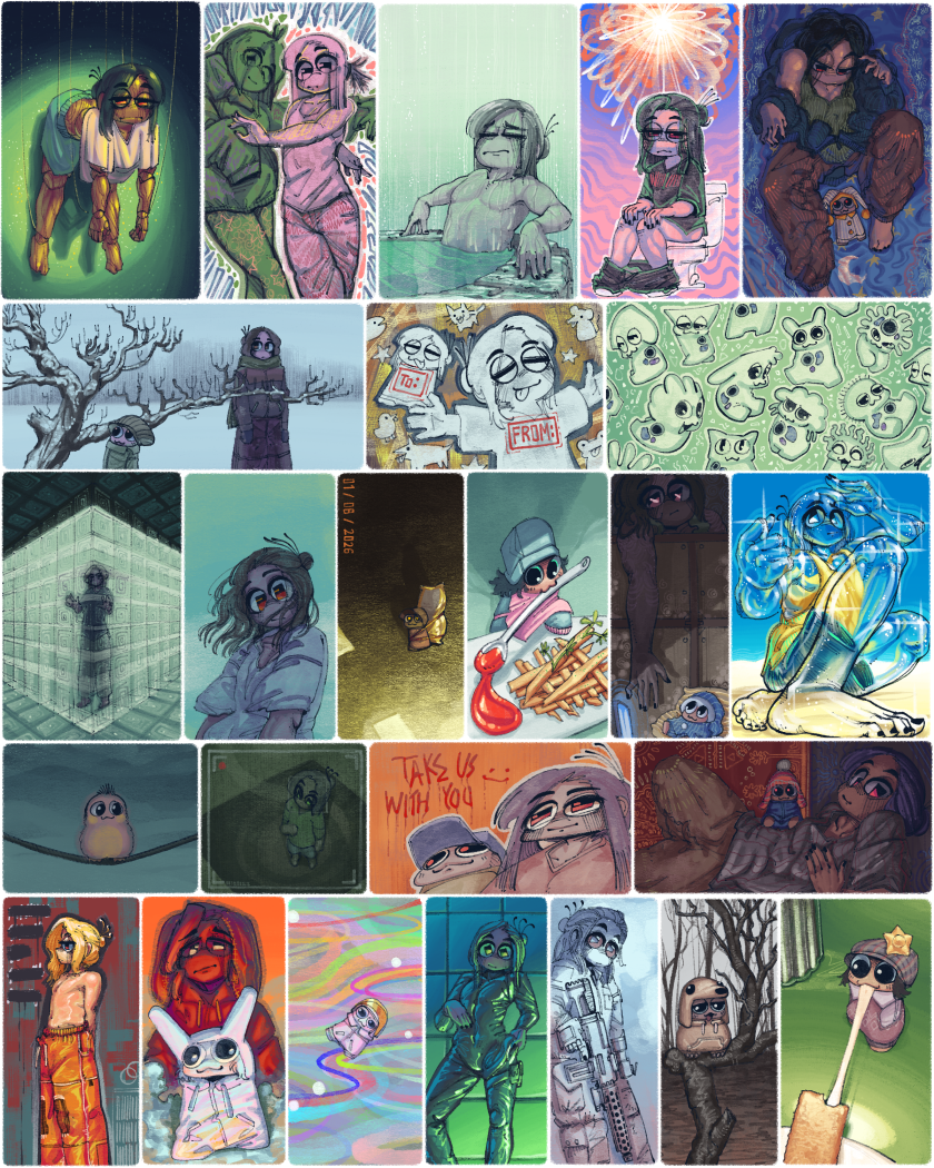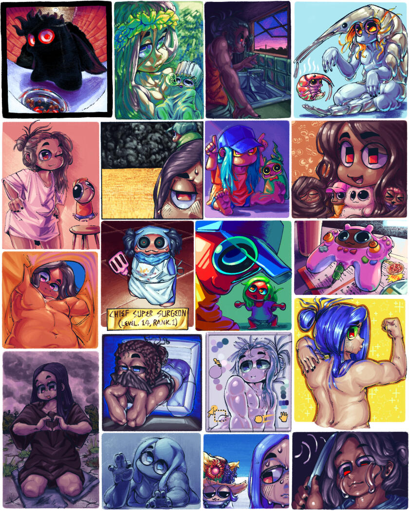 25+ year old cryptid man. professional freelance illustrator. Primarily working with 2D art, familiar with working in game development. Obsessed with food, animals, and video games the most. Introverted but I love being talked to (100%). I don't like being overwhelmed but I am quite patient! Avoid me if you don't like playful personality and vulgar humor!